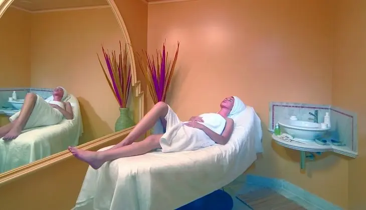 Bagno Turco: Il bagno di vapore, comunemente chiamato "bagno turco", appartiene all'antichissima tradizione dei bagni purificatori. La dilatazione dei pori provocata dal calore facilita la penetrazione del vapore e consente l'eliminazione delle tossine. La pelle acquista così luminosità, elasticità e morbidezza. Per le sue proprietà detossinanti e rilassanti, si rivela una delle migliori terapie contro lo stress e la tensione.