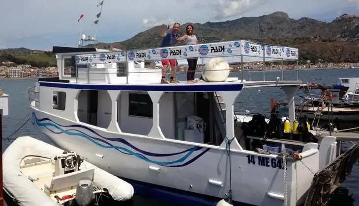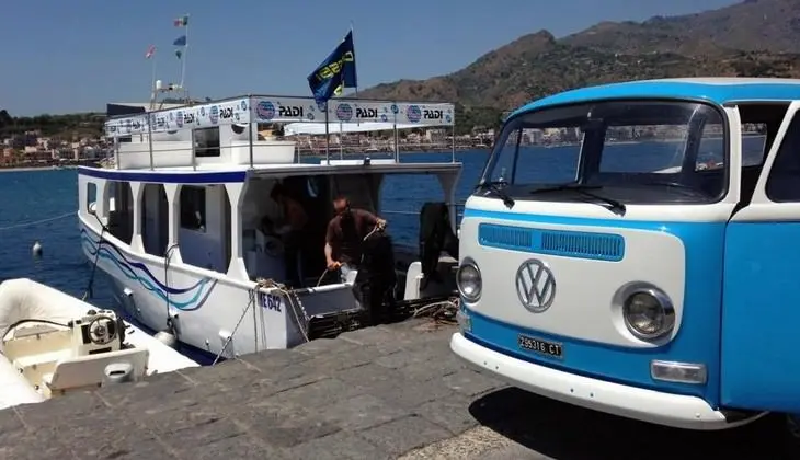 - Il servizio prevede una lezione teorica e una immersione da effettuarsi nella stessa giornata. Il centro fornirà agli allievi tutta l’attrezzatura necessaria per le immersioni. Servizio Transfer con pulmino da 10 posti che garantisce gli spostamenti gratuiti da e per gli alberghi di Giardini Naxos, per richiedere il servizio è necessario chiamare direttamente il diving center almeno il giorno prima dell’escursione.